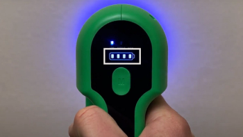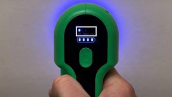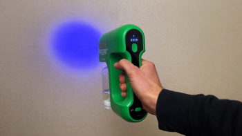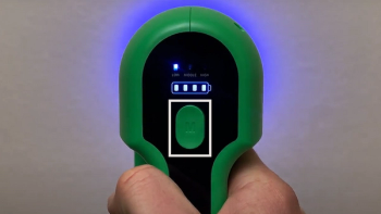 The blue LED light indicates the area where fluid is being sprayed.