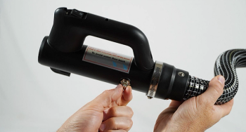 To adjust the particle size and outflow volume of the fogger, use the silver flow-adjusting knob on the spray handle.