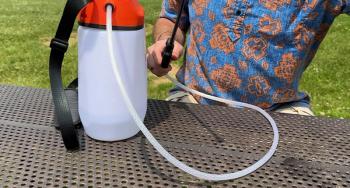 With the sprayer on, squeeze the handle to flush the air from the system. Once you've removed the air and checked proper function, drain the clean water, and you're ready to add your solution of choice.