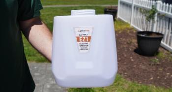 EZ1 has a 1-Gallon container that holds the liquid or solution to be sprayed.