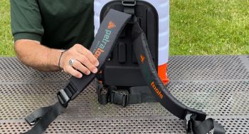 The adjustable ergonomic straps that attach the sprayer to the user's back for easy mobility.